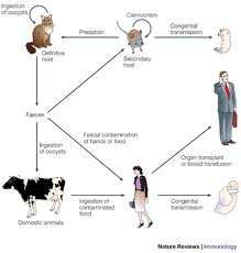 Inangutama parasit ini adalah kucing, tempat mikroba bereproduksi. Kucingyang dibiarkan liar akan lebih mudah terkena penyakit ini. Penularantoksoplasma ke manusia biasanya terjadi melalui kotoran kucing.