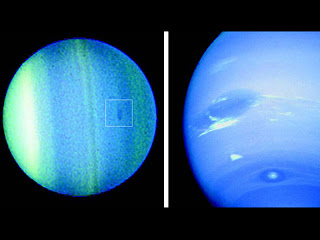 | Para peneliti mengeluarkan teori bahwa reaksi kimia yang terjadi di atmosfer Planet Uranus (kiri) dan Neptunus (kanan) akan menghasilkan hujan berlian di seluruh permukaan planet. (Foto: NASA / ESA) |